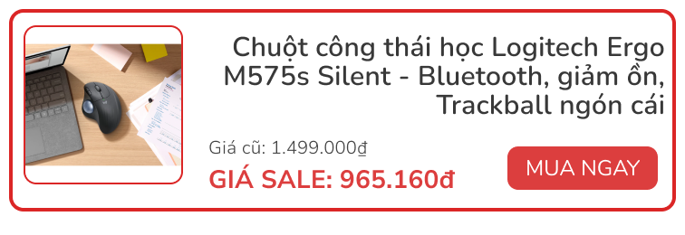 Logitech Ergo M575s Silent: Trackball ngón cái, giảm chuyển động cổ tay