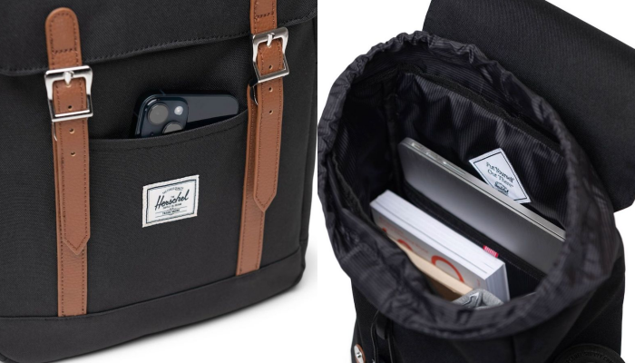 Sản phẩm có nhiều tùy chọn màu sắc, thiên về yếu tố thẩm mỹ và phong cách hơn là tối đa hóa công năng. Cấu trúc bên trong đơn giản, phù hợp với người dùng không mang quá nhiều thiết bị. Giá của Herschel Retreat Small 13 inch Backpack vào khoảng 1,9 triệu đồng.
