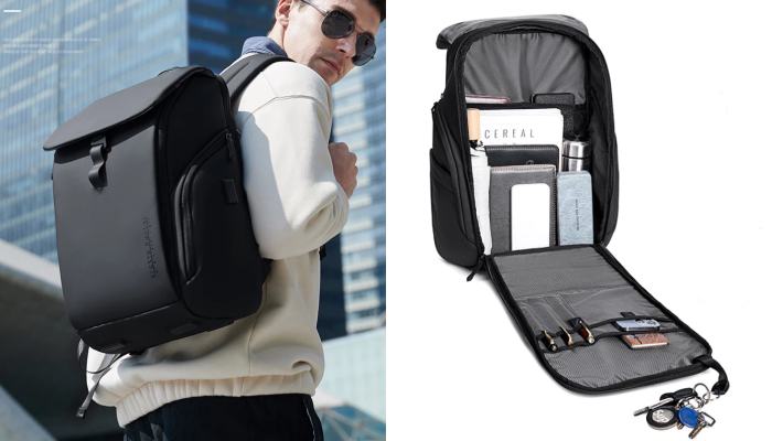 Đây là kiểu balo cực kì tối giản nhưng lại vô cùng hữu dụng. Form vuông đứng, giữ dáng tốt, phù hợp môi trường công sở. Ngăn laptop riêng biệt (tới 15.6 inch), phần đáy có đệm chống sốc. Các ngăn phụ chia rõ ràng cho sạc, chuột, tai nghe đúng kiểu tối ưu cho dân văn phòng. Chất liệu chống nước nhẹ phù hợp để mang đi chơi ngắn ngày, đựng một vài bộ quần áo.
