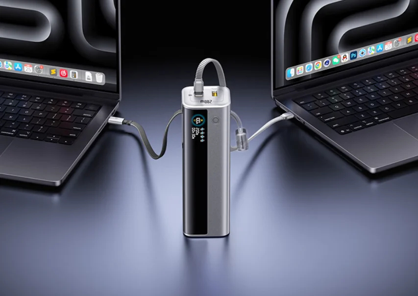 Tổng cộng, thiết bị hỗ trợ 4 đầu ra gồm 1 cổng USB-A và 3 đầu ra USB-C, trong đó có 2 đầu ra từ cáp tích hợp. Pin sạc có thể xử lý nhiều kịch bản khác nhau, chẳng hạn sạc 2 laptop cùng lúc với cấu hình 100W + 100W, hoặc sạc laptop và phụ kiện với mức 140W + 22.5W.