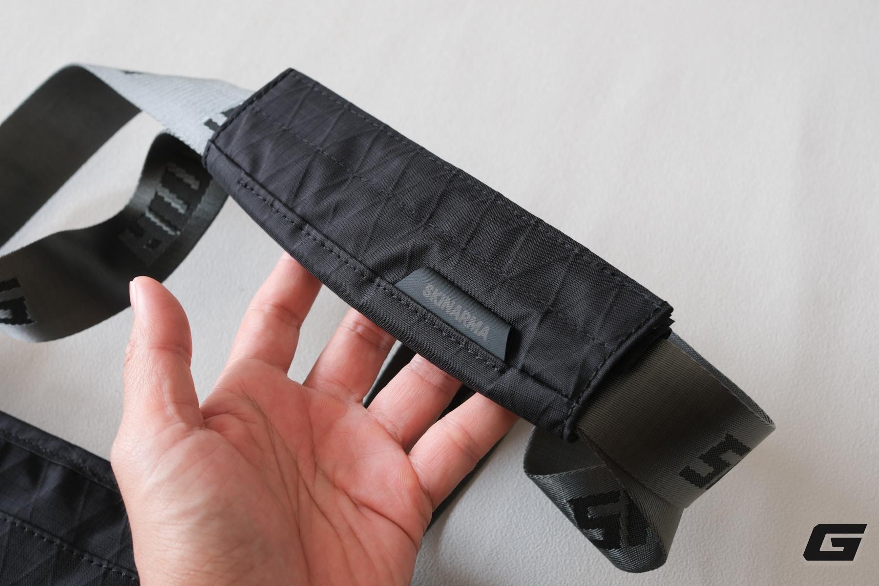 Dây đeo được hoàn thiện chắc chắn với tông xám trung tính, bản dây dày dặn và logo Skinarma in chìm tinh tế, vừa đảm bảo độ bền khi sử dụng lâu dài, vừa giữ được dấu ấn nhận diện đặc trưng của thương hiệu.