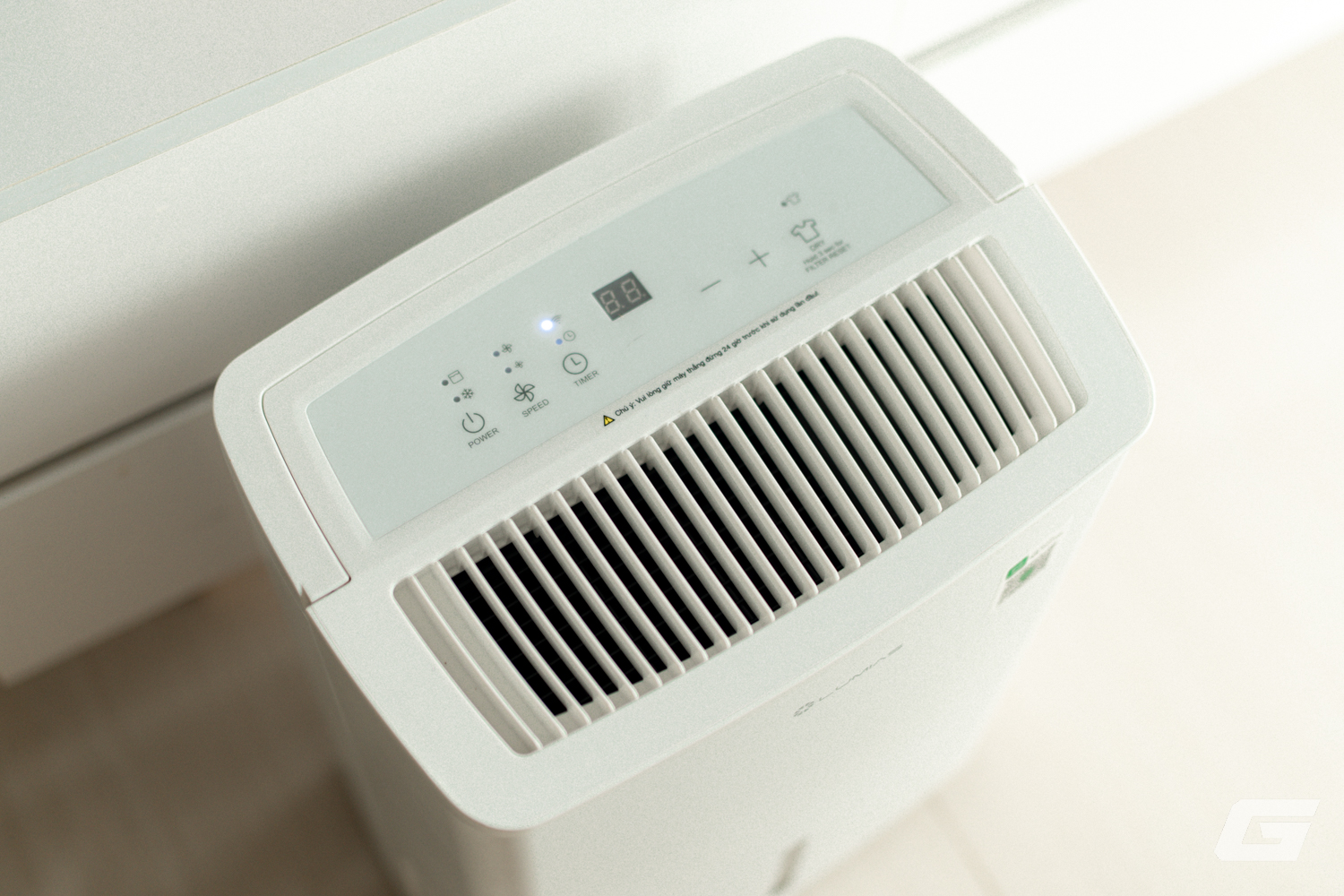 Điểm dễ nhận ra nhất là máy không làm lạnh phòng. Có thể bật từ sáng đến chiều mà không bị gai người hay lạnh tay. Sau khoảng 1 tiếng, độ ẩm giảm rõ, sàn nhà bớt dính, không khí nhẹ hơn hẳn.