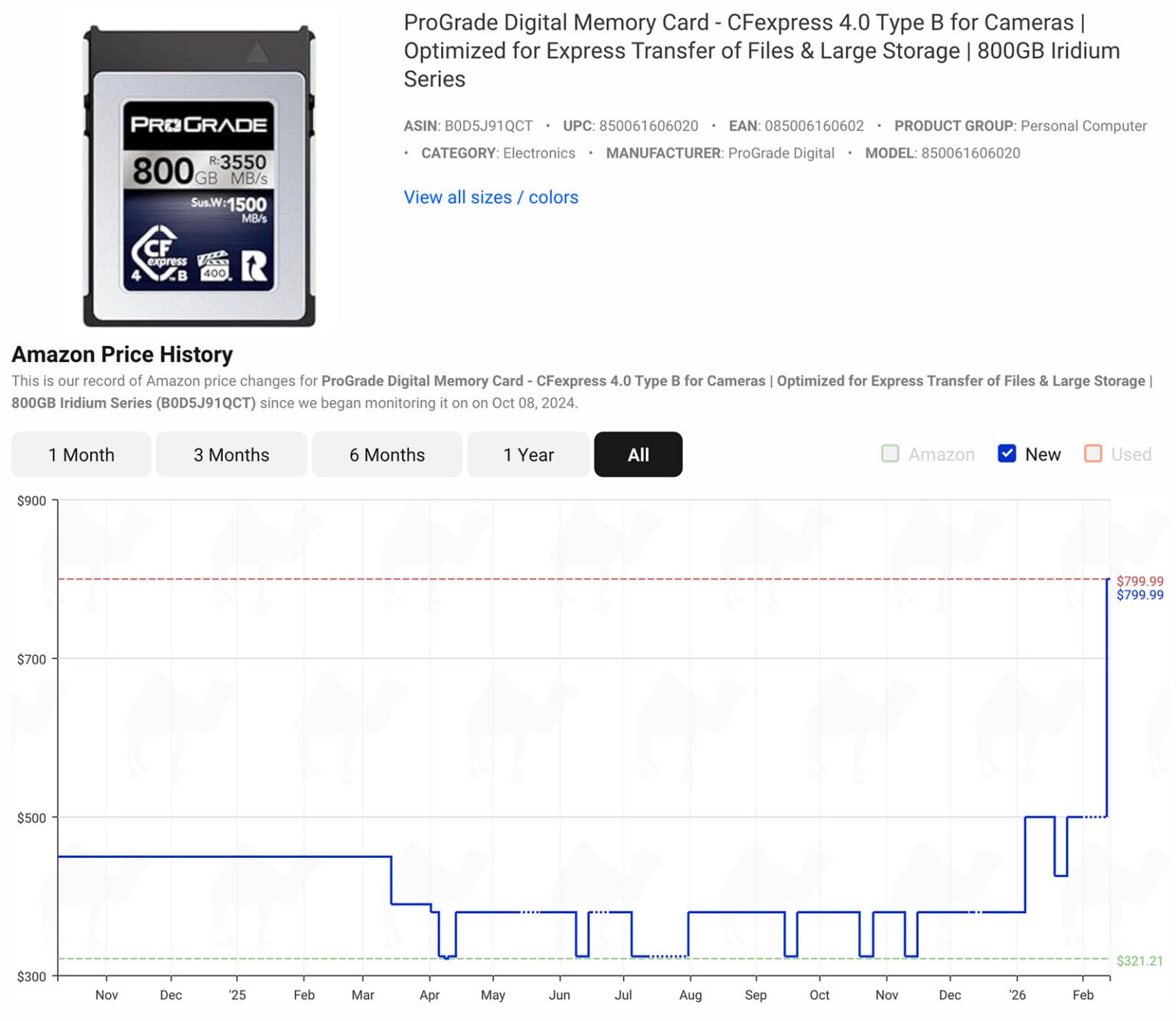 Thẻ nhớ tăng còn mạnh hơn. SanDisk Extreme Pro 128 GB từ 90 USD, tương đương khoảng 2,38 triệu đồng, lên 190 USD, tương đương khoảng 5,02 triệu đồng. ProGrade Digital 128 GB và Lexar 128 GB đều tăng từ khoảng 85 USD lên 170 USD. Với CFexpress, Lexar 128 GB tăng từ 52 USD lên 110 USD, còn ProGrade 800 GB VPG400 tăng từ 322 USD lên 800 USD, tương đương khoảng 21,12 triệu đồng.