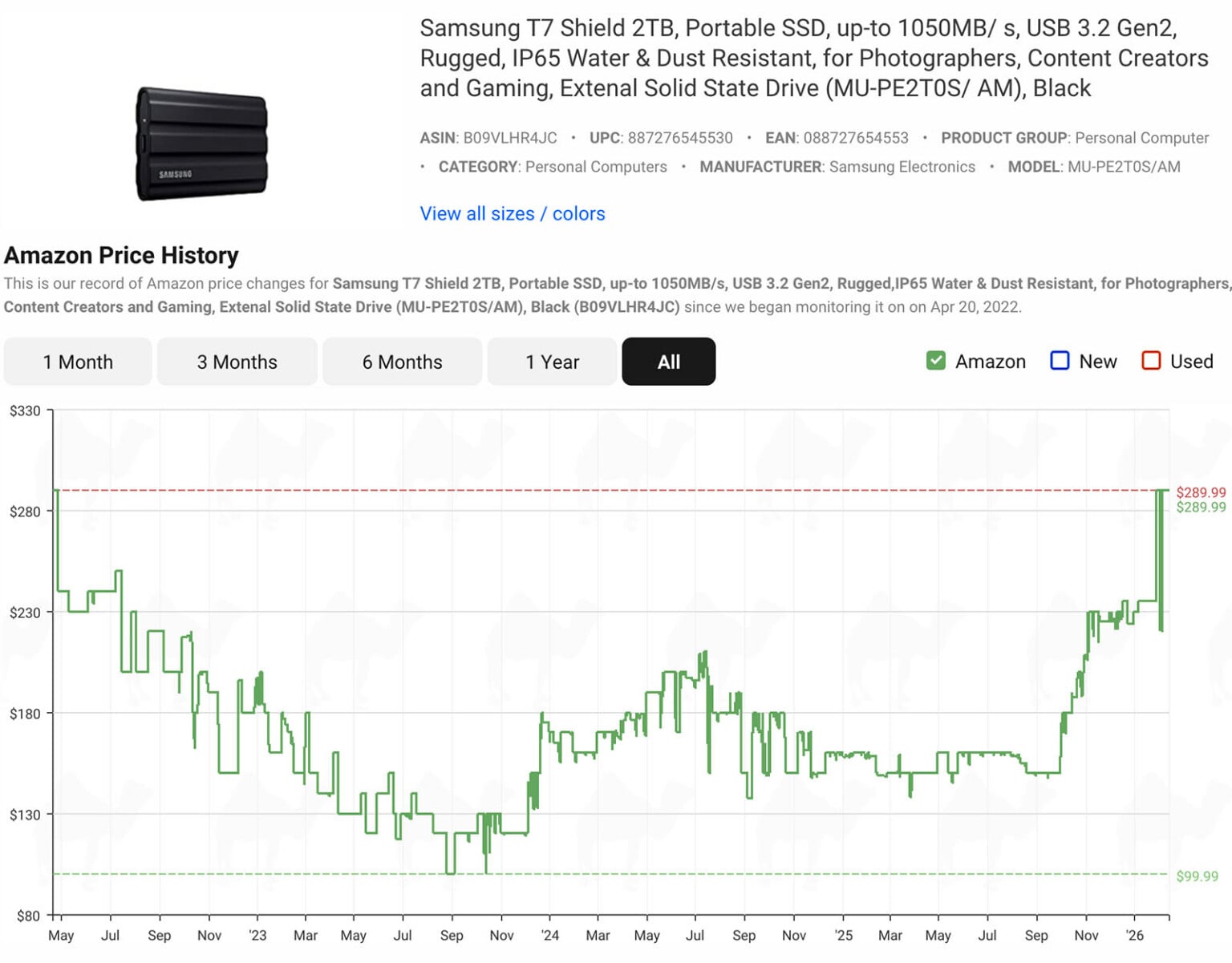 Dòng SanDisk Creator 4 TB từng ở mức 266 USD, tương đương khoảng 7,02 triệu đồng, hiện đã tăng lên 589 USD, tương đương khoảng 15,55 triệu đồng. Samsung T7 Shield 2 TB, mẫu SSD di động quen thuộc, cũng tăng từ 100 USD lên 290 USD, tương đương khoảng 7,66 triệu đồng.