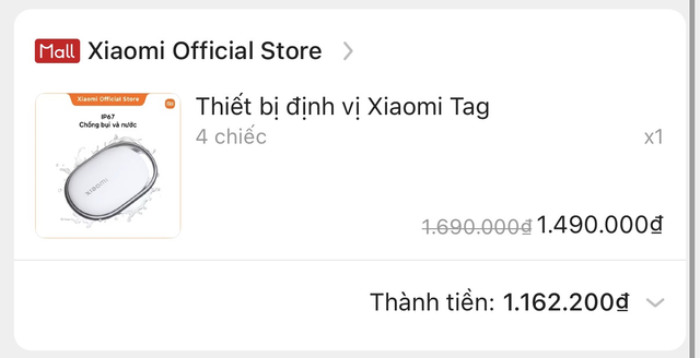 Xiaomi Tag được phân phối chính hãng tại Việt Nam với giá 590.000 đồng cho một chiếc và 1.690.000 đồng cho bộ bốn chiếc. Trong giai đoạn mở bán đầu, giá khuyến mãi lần lượt là 490.000 đồng và 1.490.000 đồng. Bạn đọc có thể tham khảo tại Shopee Mall và Lazada Mall, trong ngày sale 4/4 tới đây mức giá sẽ được giảm thêm khi áp dụng voucher.