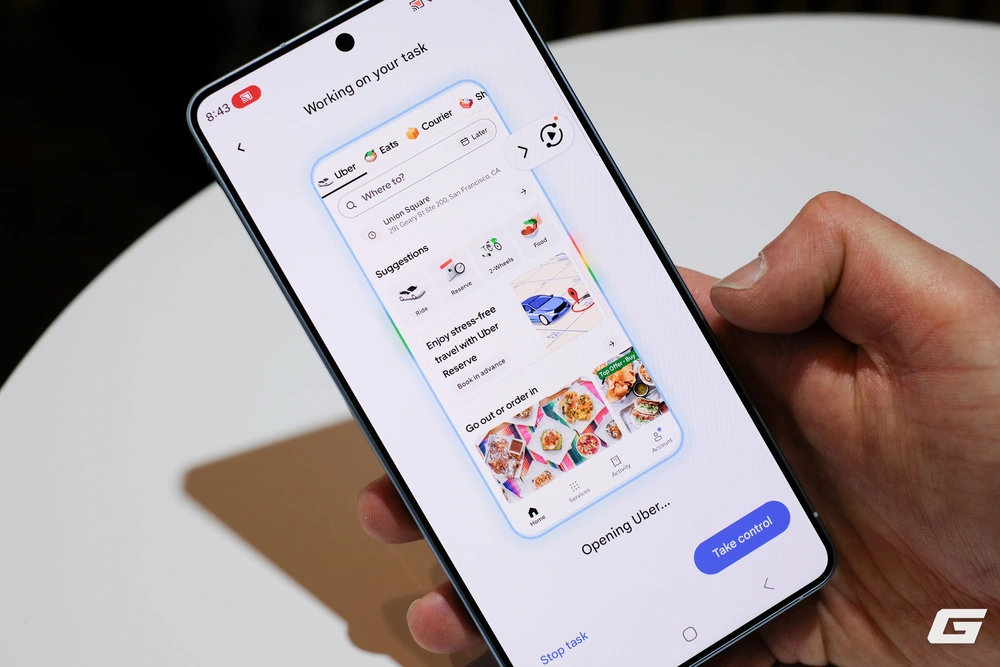 Thử nghiệm "Agentic AI" trên Galaxy S26 Ultra: chỉ cần 1 câu lệnh "gọi Uber tới sân bay SFO", Gemini sẽ mở ứng dụng Uber và đặt xe tới địa điểm mà người dùng chọn. Quá trình này hoạt động hoàn toàn trong nền (background), nhưng người dùng có thể xem AI làm việc và can thiệp bất cứ lúc nào.