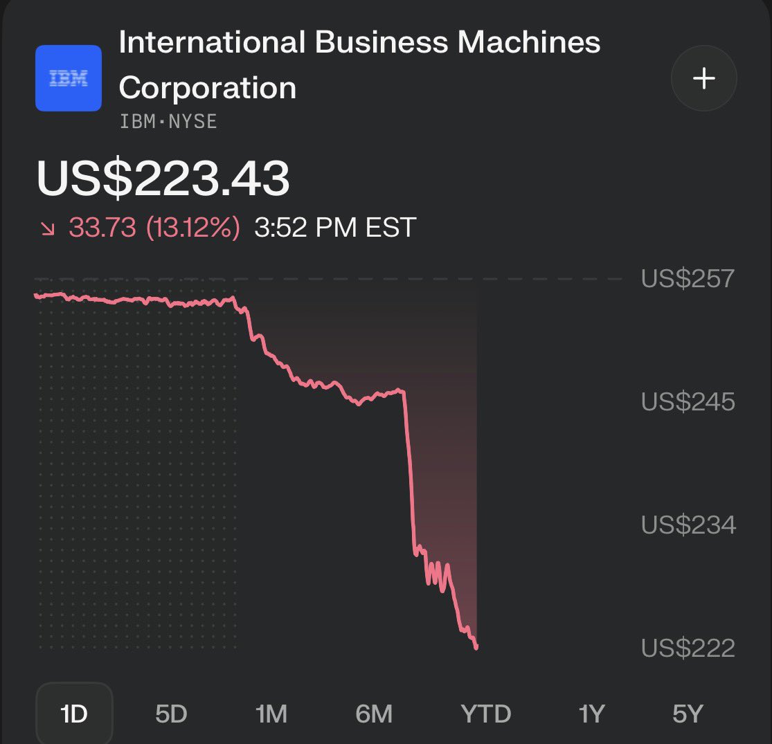 Cổ phiếu IBM sụt giảm hơn 13% sau thông báo của Anthropic