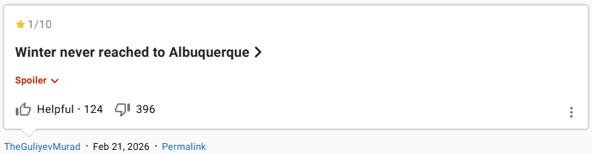 "Mùa đông đã tới": người dùng IMDb này thổ lộ cảm xúc bực tức trước sự nhỏ nhen của fan Breaking Bad và đánh giá 1 sao cho tập phim Ozymandias.