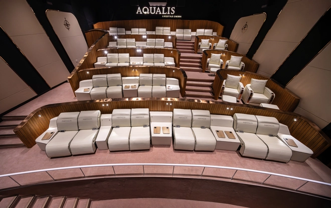 Aqualis: Phòng chiếu VIP mang đậm hơi thở đại dương và phong cách du thuyền, tạo cảm giác thư giãn tuyệt đối.