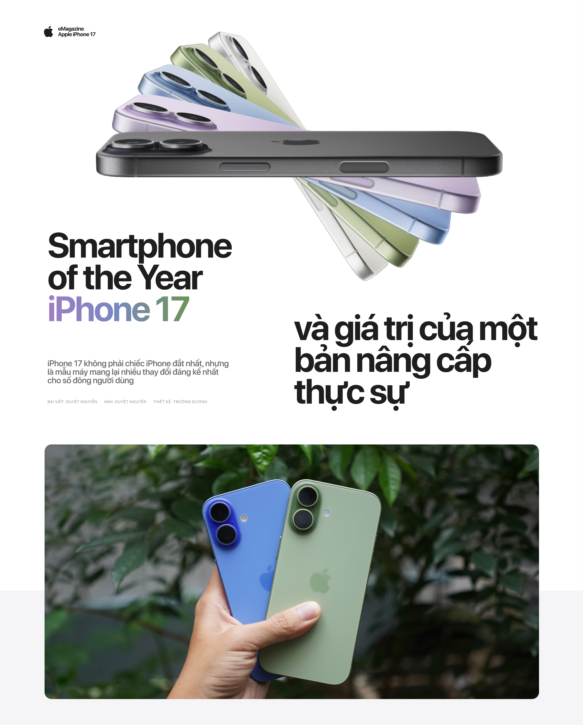 Và đó là lý do tôi gọi iPhone 17 là smartphone của năm. Không phải vì nó đắt nhất, mạnh nhất hay độc đáo nhất. Mà vì nó mang lại nhiều giá trị nhất cho số đông, đúng vào thời điểm người dùng bắt đầu đặt câu hỏi: nếu không có thay đổi đáng kể, vì sao phải nâng cấp. Năm nay, iPhone 17 đã trả lời được câu hỏi đó.