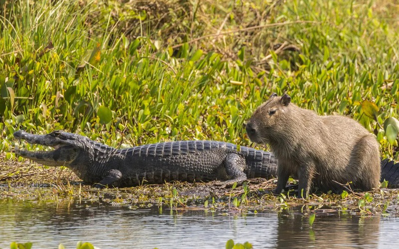 Chuột lang nước, hay capybara, loài gặm nhấm lớn nhất hành tinh, từ lâu đã nổi tiếng với tính cách điềm đạm, thân thiện và một khả năng đặc biệt: sống hòa bình với hầu hết mọi loài, kể cả cá sấu và caiman, những kẻ săn mồi đáng sợ nhất ở Nam Mỹ.