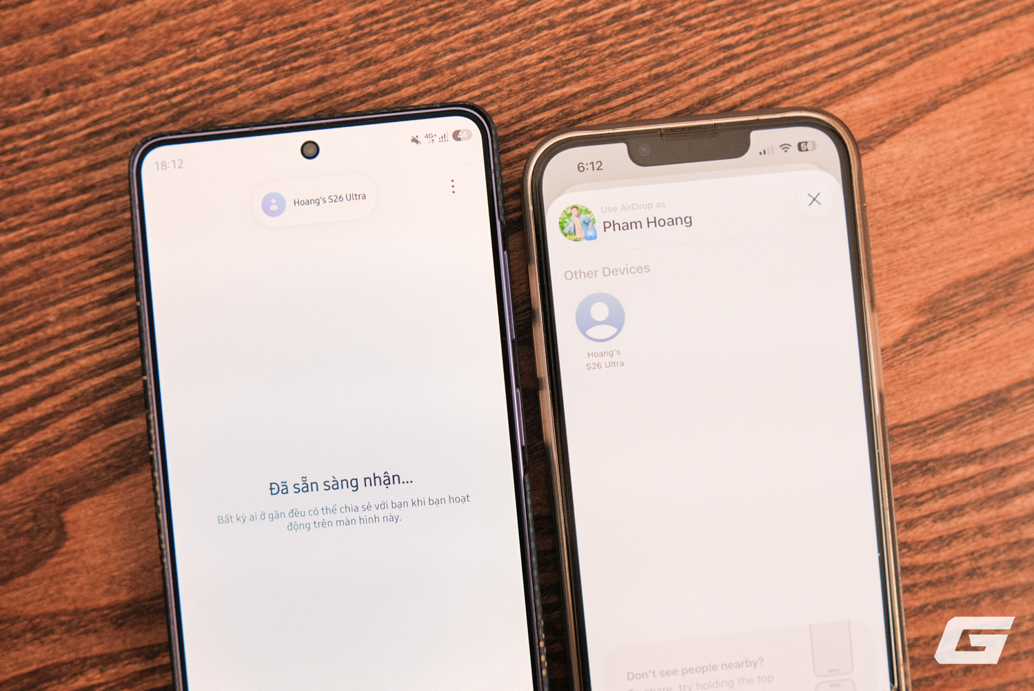 Sau khi bật tính năng, trải nghiệm thực tế gần như giống hệt dùng Quick Share hay AirDrop thông thường. Từ Galaxy S26 Ultra, chọn ảnh hoặc file, nhấn chia sẻ, chọn Quick Share - iPhone và MacBook gần đó hiện ra ngay trong danh sách thiết bị nhận. Phía iPhone cũng làm tương tự với AirDrop, Galaxy S26 xuất hiện như một thiết bị bình thường, chấp nhận là xong.