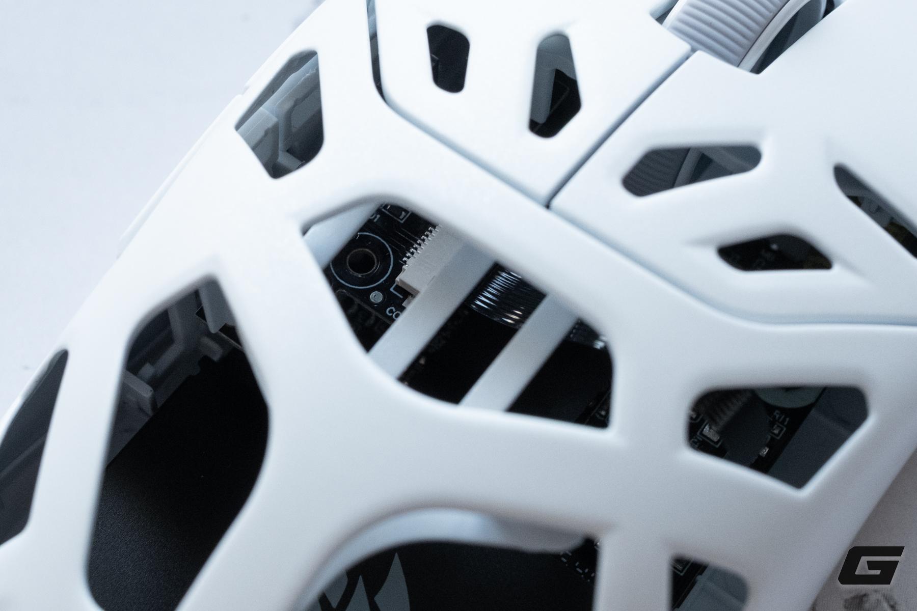 Không chỉ đóng vai trò then chốt trong việc giảm thiểu trọng lượng xuống mức lý tưởng 56g, cấu trúc rỗng này còn mang lại lợi ích kép: vừa giúp lòng bàn tay game thủ luôn khô ráo, hạn chế tối đa tình trạng bí bách hay ra mồ hôi khi thi đấu căng thẳng, vừa phô diễn vẻ đẹp cơ khí đầy cuốn hút của các linh kiện nội thất bên trong.