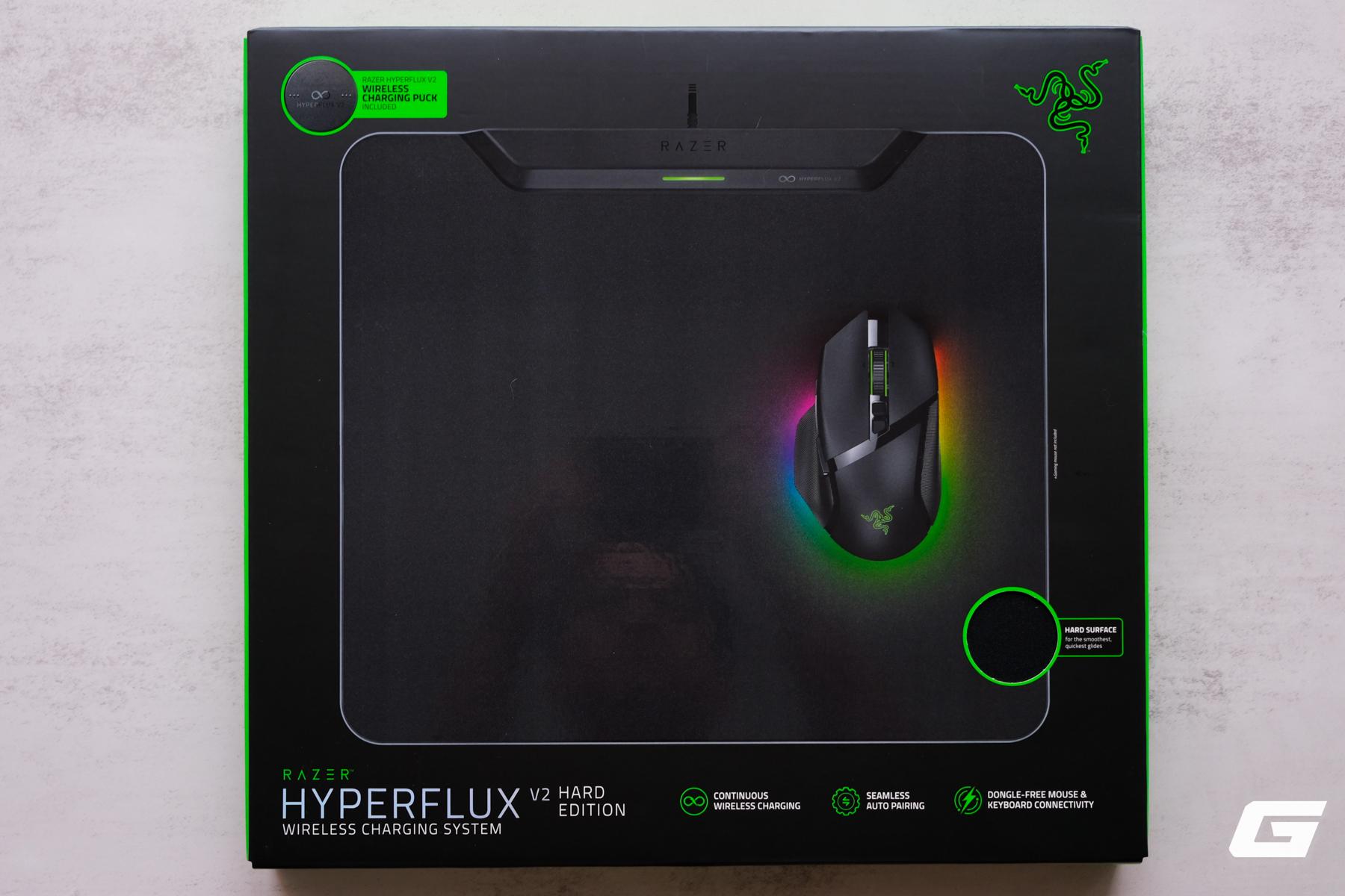 Trọn bộ Razer HyperFlux V2 Hard Edition cùng viên puck HyperFlux đi kèm.