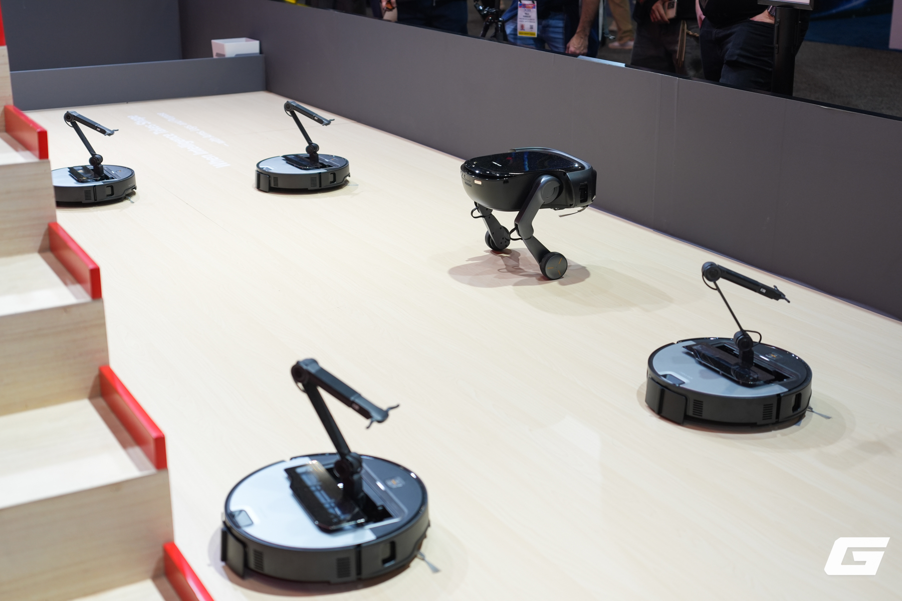 Điểm thu hút sự chú ý lớn nhất tại gian hàng Roborock ở CES 2026 là Saros Rover, mẫu robot hút bụi có khả năng leo cầu thang nhờ thiết kế wheel leg, kết hợp bánh xe với các chân có khớp gập. Robot có thể nâng thân máy lên gần 1 foot, dừng lại làm sạch từng bậc rồi tiếp tục di chuyển lên hoặc xuống giữa các tầng mà không cần con người can thiệp. Trình diễn thực tế cho thấy Rover leo và xuống cầu thang khá điềm tĩnh, không phô trương, giữ thân máy ổn định khi chuyển từ sàn cứng sang thảm và tránh được các vật cản như dây điện.