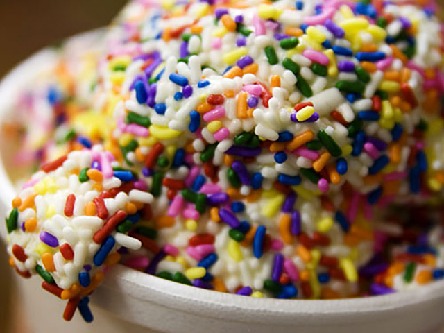 Không như bạn nghĩ, những viên cốm sặc sỡ này sẽ rất khó bám lên kem thật. Vì vậy, thay vì những viên kem mát lạnh, giấy vệ sinh sẽ được nhúng ướt và... độn vào bên trong những cốc kem. Chính nguyên liệu đặc biệt này sẽ giúp những viên cốm bám trụ vững chắc và tạo ra những tấm ảnh khiến người xem chảy nước miếng.