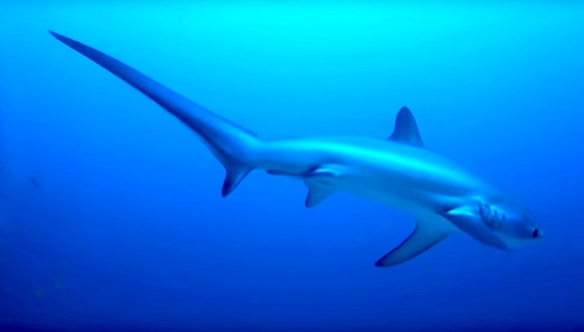 6. Cá mập cáo: Đám này cực ngầu: chúng dùng đuôi để quật con mồi, gây choáng và ăn thịt chúng dễ dàng. Một nửa chiều dài của loài cá 3m này là vây sau của chúng.