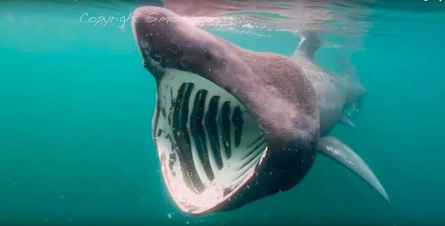 4. Cá nhám phơi nắng: Con quái vật dài 12m này là loài cá lớn nhất trong tất cả các loài tại duyên hải Scotland – hay bất kỳ vùng nước ấm nào có đủ lượng sinh vật phù du nhét vừa cái mồm to khủng khiếp của nó.