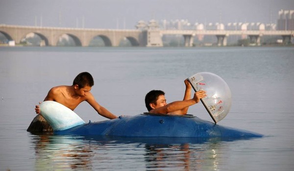 Chiếc tàu ngầm tại gia của Zhang Wuyi đang được thử nghiệm tại Hồ Moshui, Vũ Hán. Chiếc tàu ngầm dài 4,6 mét mà bạn đang thấy được thực hiện trong vòng 25 ngày với linh kiện là các bộ phận lấy ra từ một chiếc thuyền. Theo Zhang, nó có thể di chuyển 20km mỗi giờ trong 10 giờ liên tục. Thực tế, Zhang từng là một nhân sự học việc của Li Yuming, một người cùng địa phương có mối quan tâm lớn đến tàu ngầm khác. Li Yuming đã dựng 7 chiếc tàu ngầm trong vòng 5 năm qua.