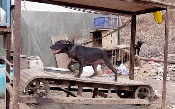 Chiếc máy đi bộ dành cho chó này là sản phẩm của một người ở Thiệu Dương, Hồ Nam, Trung Quốc.
