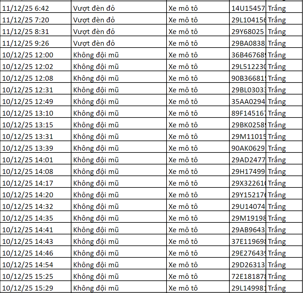 Trong thời gian gần đây, lực lượng Cảnh sát giao thông các địa phương tiếp tục tăng cường ứng dụng hệ thống camera giám sát và thiết bị kỹ thuật nghiệp vụ nhằm xử lý nghiêm các hành vi vi phạm trật tự an toàn giao thông. Qua đó, hàng trăm trường hợp vi phạm đã bị phát hiện và lập hồ sơ xử phạt nguội, yêu cầu chủ phương tiện nhanh chóng phối hợp giải quyết theo quy định của pháp luật.