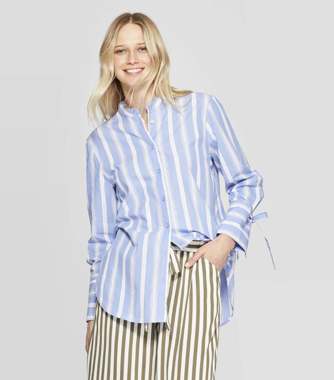 Với áo sơ mi đơn giản, bạn có thể biến tấu chúng đi một chút để tăng thêm phần cá tính và thu hút bằng cách sơ mi một bên vạt áo, như vậy nhìn bạn sẽ "chất chơi" hơn hẳn. Ngoài ra, bạn cũng có thể mặc quần jeans hoặc quần short cạp cao và sơ vin áo sơ mi để tạo nên sự trẻ trung, tươi mới, gọn gàng thanh lịch. Không chỉ vậy, với những chiếc áo sơ mi dài, bạn có thể biến tấu chúng thành váy ngắn cũng được, nhưng nhớ cân nhắc độ dài để tránh bị hớ hênh nhé.