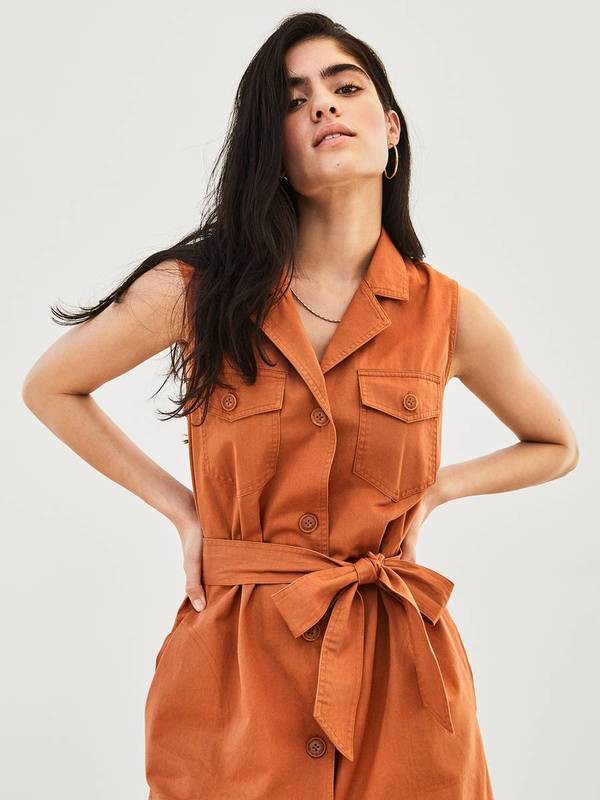 Áo vest không tay trông cực kỳ thanh lịch, sang trọng và quý phái. Với kiểu áo này, bạn có thể biến tấu chúng thành những chiếc váy xinh xắn, duyên dáng, kết hợp với chiếc thắt lưng xinh xắn nữa thì chuẩn không cần chỉnh. Bên trong bạn có thể mặc áo phông, áo thun hoặc áo hai dây tùy ý.