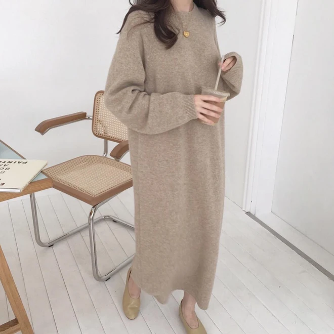 Cô nàng nào cũng cần ít nhất một bộ đồ "cứu nguy" cho những ngày dậy muộn vội vã không kịp lên đồ. Trùng hợp là váy len dài cũng đang là hot trend bên Hàn độ này, vậy thì các nàng còn chần chừ gì nữa mà không cho ngay item này vào danh sách cần sắm cho mùa lạnh năm nay nhỉ? Váy len dài với những gam màu nền nã, tây tây như be, nâu nhạt, ghi, muối tiêu vừa ấm áp lại vừa khắc phục được nhiều khuyết điểm vóc dáng như bắp tay to, bắp chân to, vòng eo kém thon... Chỉ cần chui vào, thêm giày sneaker, giày mule hoặc giày búp bê là ta đã có set đồ đi làm, đi chơi xinh xắn chuẩn Hàn rồi.