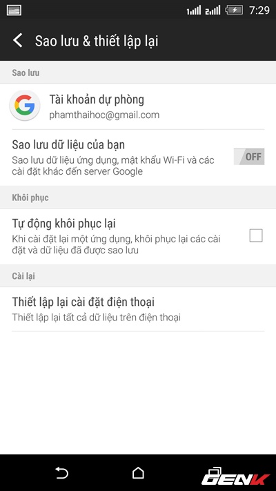 Giải pháp đầu tiên trong việc “hồi xuân” chiếc smartphone Android của bạn là việc thiết lập thiết bị trở về cài đặt gốc. Việc làm này sẽ giúp bạn sẽ cảm thấy như đây là một chiếc điện thoại mới và cũng góp phần cải thiện lại tổng thể hiệu suất của thiết bị, cũng như giải quyết hết tất cả các vấn đề lỗi phát sinh trước đó. Nhưng bạn cũng nên lưu ý rằng việc khôi phục lại cài đặt gốc sẽ xóa sạch tất cả các dữ liệu đã lưu trước đó. Do đó, bạn cần nên sao lưu lại các dữ liệu mà mình thấy quan trọng.