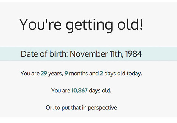 Trang web này sẽ cho bạn biết chính xác bạn đã sống bao nhiêu ngày trên trái đất và nhiều thông tin khác liên quan tới ngày sinh của bạn để cho bạn biết rằng... bạn đã già.