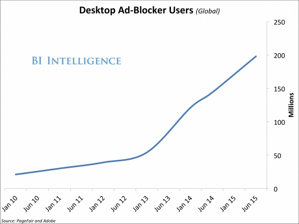 Một thống kê mới đây của BI Intelligence cho thấy hiện đã có gần 200 triệu người thường xuyên sử dụng các tiện ích chặn quảng cáo hàng tháng.