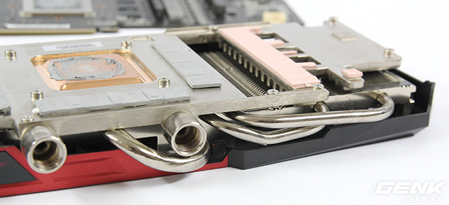 Đây là 1 chi tiết rất đắt bởi thông thường người dùng muốn thay tản nước cho card đồ họa phải chế lại đế dẫn nhiệt và tản nhiệt cho linh kiện trên bo mạch, cực kỳ phức tạp và tốn kém. GTX 980 Ti Poseidon thì đơn giản hơn nhiều, chỉ cần đóng thẳng ống dẫn nước vào là xong.
