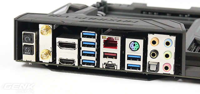 Về phía các cổng giao tiếp I/O phía sau cũng không thể đòi hỏi gì thêm, đủ mọi đồ chơi hiện đại nhất tính đến thời điểm hiện tại: 2 cổng giao tiếp với ăng-ten wifi bluetooth; 1 cổng HDMI 1.4b; 1 cổng DisplayPort 1.2; 6 cổng USB 3.0; cổng USB 3.1 Type-A và Type-C, cổng LAN Intel I219-V cao cấp.