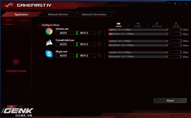 - Nguyên nhân thứ hai là các phần mềm khác chiếm dụng băng thông, dẫn đến ping cao và lag. Vì thế Asus làm hẳn 1 phần mềm chỉ để kiểm soát chuyện này. Nếu muốn, game thủ có thể đặt tốc độ giới hạn cho trình duyệt web, các phần mềm download, các phần mềm chat… để chúng không gây ảnh hưởng tới trận đấu.