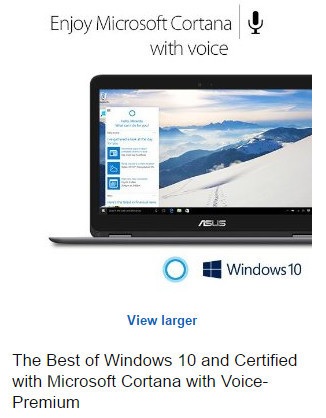 Asus cũng cho biết rằng đây là thiết bị đầu tiên của công ty được "hỗ trợ Microsoft Cortana với Voice-Premium", nghĩa là việc điều khiển bằng giọng nói sẽ hoạt động tốt hơn, trong điều kiện khoảng cách xa hơn và có nhiều tiếng ồn hơn so với các sản phẩm trước đây. Cụ thể, với tính năng này, người dùng có thể điều khiển chiếc máy tính xách tay của mình từ khoảng cách 4 mét trong những môi trường như nhà bếp hay phòng khách.