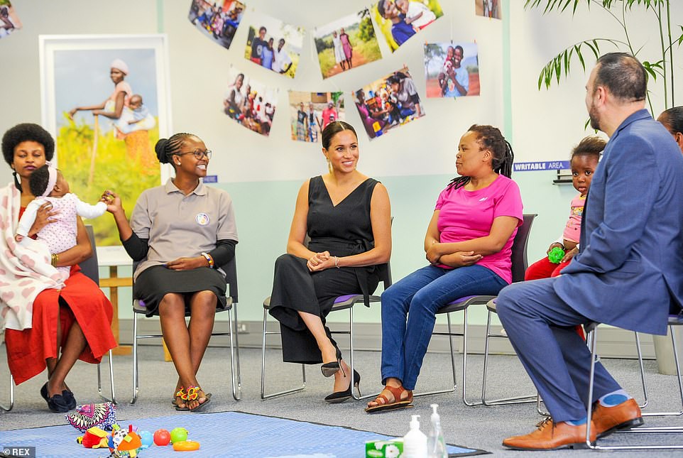 Trong khi ngồi trên ghế trò chuyện với những bà mẹ bị nhiễm HIV có con nhỏ, Meghan Markle bất ngờ ngồi xuống sàn nhà, trên một tấm thảm có rải nhiều đồ chơi trước sự kinh ngạc của những người có mặt. Nhiều người tỏ ra ngạc nhiên và chần chừ, khiến Meghan Markle phải kêu gọi tất cả các bà mẹ cùng ngồi xuống với mình để chơi đùa với lũ trẻ.