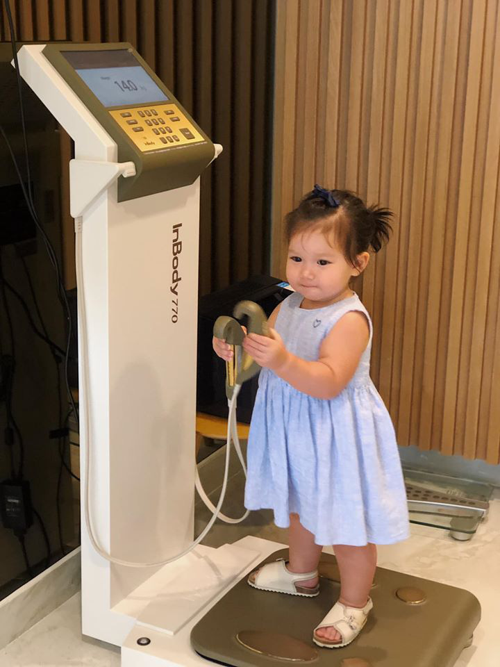 Nhờ cách nuôi con khéo léo của bà mẹ siêu mẫu nên bé Myla rất bụ bẫm, khỏe mạnh và cao lớn vượt trội so với những em bé cùng tuổi.