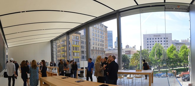 Apple Store mới vừa được mở cửa vào thứ Bảy tuần trước, nó tọa lạc giữa trung tâm thành phố San Francisco, cạnh bên Công viên Union Square, biểu tượng của thành phố này.
