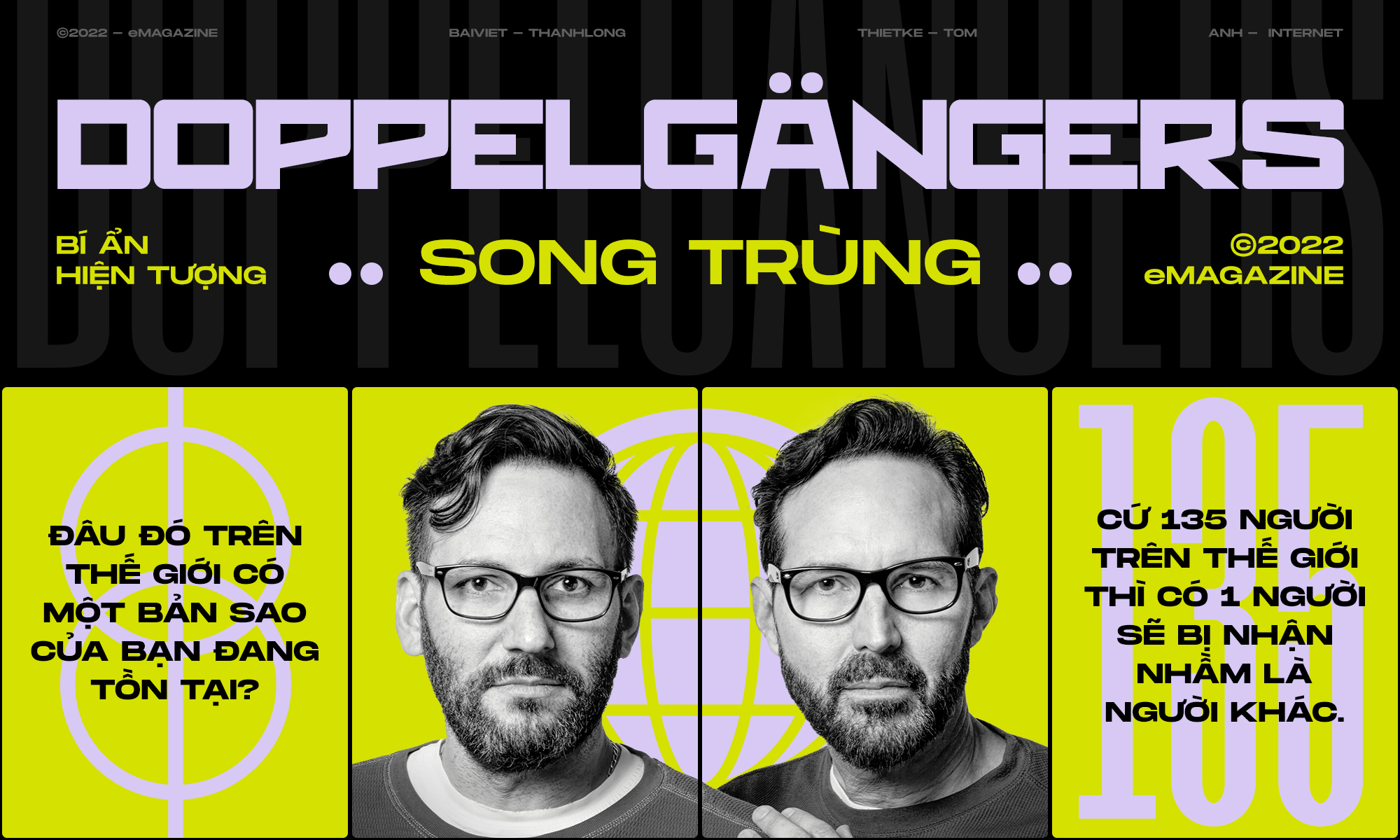 Đây là người Doppelgängers, mà ai đó khi nhìn thấy sẽ nói với bạn rằng "Tôi vừa gặp một người giống hệt bạn hôm nọ". Và đó cũng sẽ là người khiến bạn phải đứng hình trong trung tâm thương mại khi vô tình bắt gặp. Là người mà khi gặp người khác có thể chào họ với cái tên của bạn.