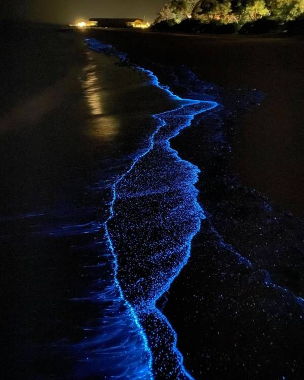 Nhưng trong số nhiều bãi biển tuyệt đẹp của quốc gia, có một bãi biển nổi bật: bờ biển Vaadhoo, một hòn đảo nhỏ ở đảo san hô vòng Raa với chỉ khoảng 500 cư dân. Ở đó, nước biển có thể phát ra ánh sáng màu xanh và hiện tượng này được nhìn thấy rõ nhất vào cuối mùa hè và đầu mùa thu.