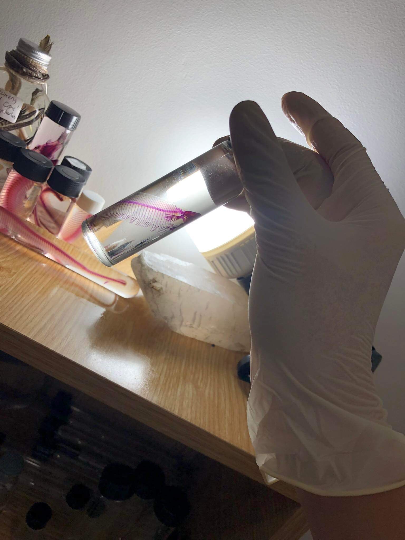 Duy cũng có một góc riêng tại nhà để phục vụ cho công việc nghiên cứu và nhuộm tiêu bản. Quá trình này cần phải dùng rất nhiều loài hóa chất khác nhau nên việc trang bị đầu đủ đồ bảo hộ là điều bắt buộc nếu muốn giữ an toàn cho bản thân.