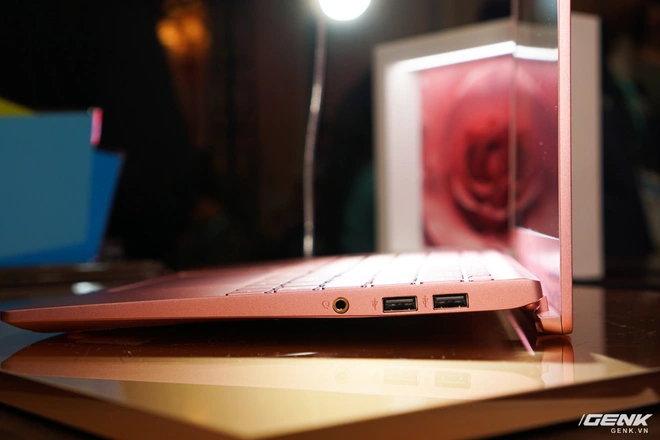 Prestige 14 màu hồng, được MSI gọi là "Rose Pink", giữ nguyên thiết kế so với phiên bản được ra mắt cách đây vài tháng. Nhưng với lớp vỏ ngoài toàn bộ là màu hồng, rõ ràng đây là chiếc máy được hướng tới đối tượng người dùng nữ.