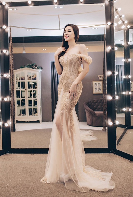Đến với thảm đỏ chung khảo phía Nam Hoa hậu Thế giới Việt Nam 2019, Mai Phương Thúy chọn diện mẫu đầm quây mang tông “màu mắm tôm”.