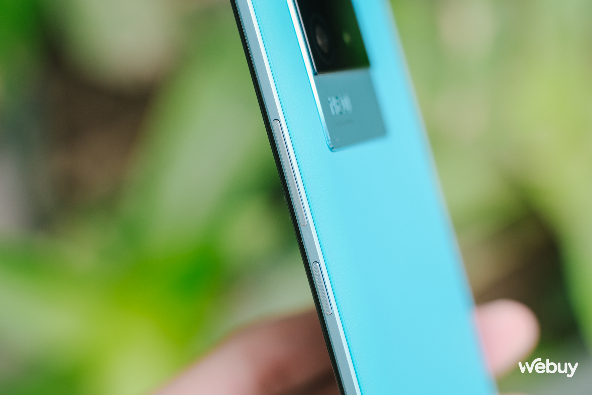 Logo "iQOO" được khắc lên bề mặt da