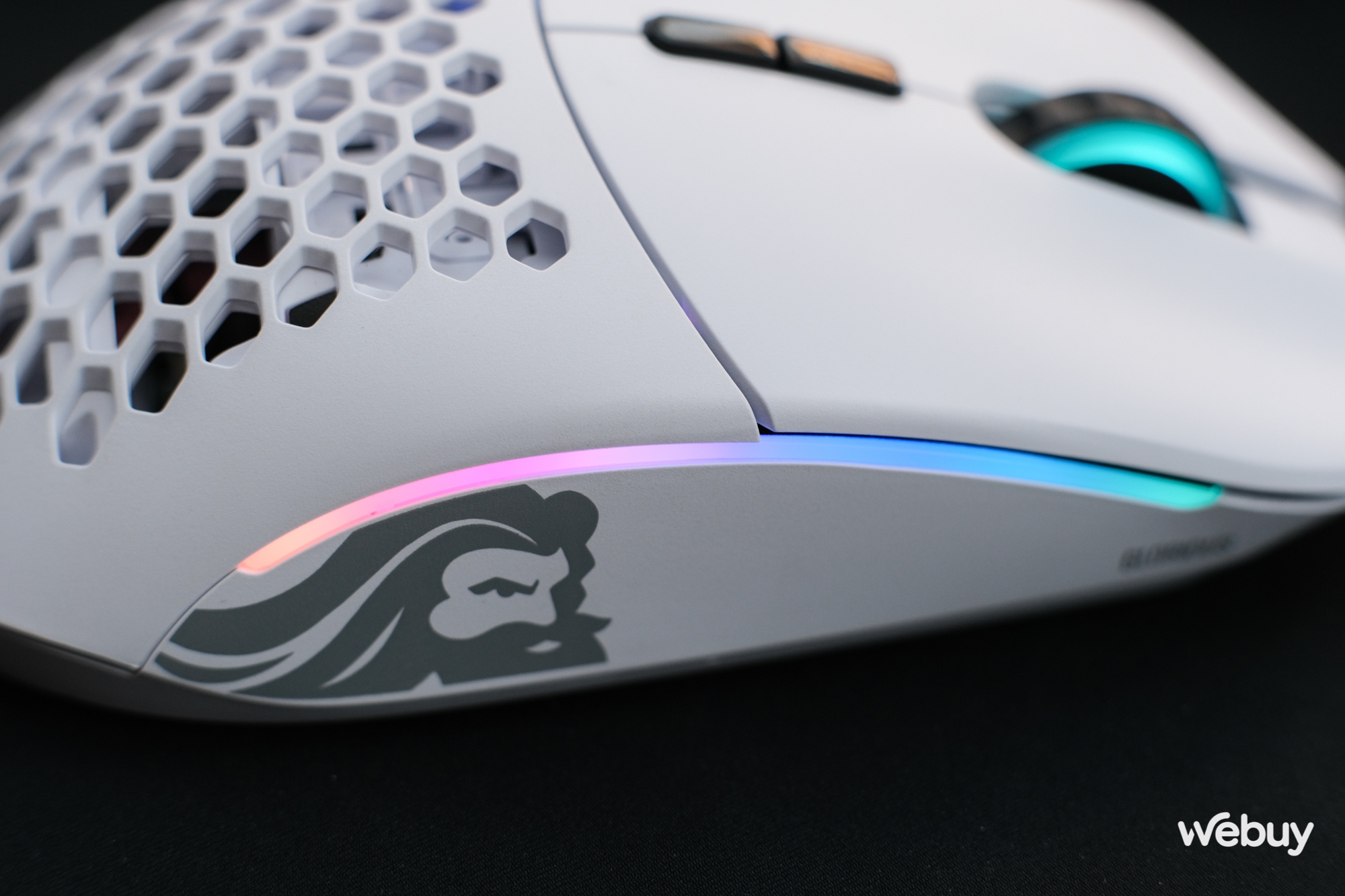 Ngoài ra không thể không kể tới các dải đèn LED RGB chạy dọc theo thân máy và con lăn chuột. Game thủ hệ RGB chắc chắn sẽ thích đèn LED này vì nó cho cảm giác khá "chill". Tất nhiên người dùng có thể tuỳ chỉnh đèn trong ứng dụng Glorious Core, cũng như tuỳ chỉnh các mode sáng đèn và cường độ đèn bằng nút chuột
