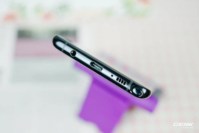 Các cạnh bên của máy. Galaxy Note10 Lite giữ được jack cắm tai nghe đã bị loại bỏ trên Note10 và có hỗ trợ cả thẻ nhớ mở rộng
