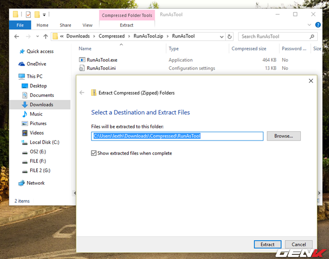 Tải về RunAsTool tại đây, sau đó giải nén vào vị trí mà bất kỳ người dùng User nào cũng có thể truy cập. Công cụ này được phát hành miễn phí và phù hợp với mọi phiên bản Windows thông dụng hiện nay.