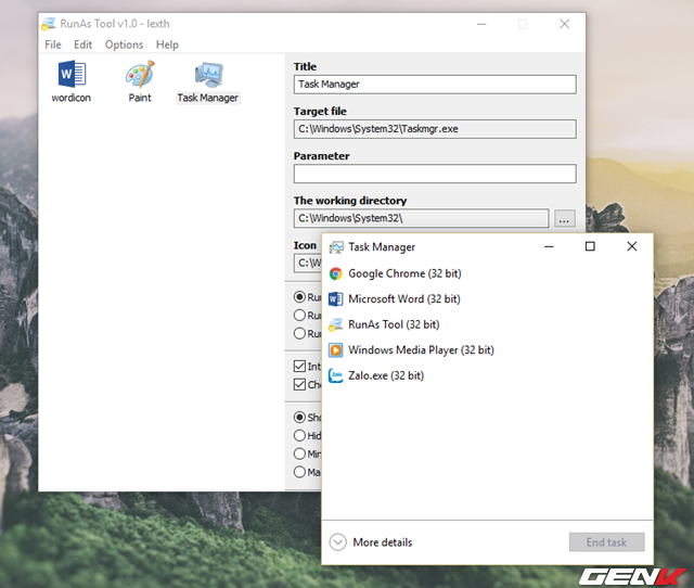 Khởi chạy tập tin EXE của RunAsTool để sử dụng ngay mà không cần cài đặt.