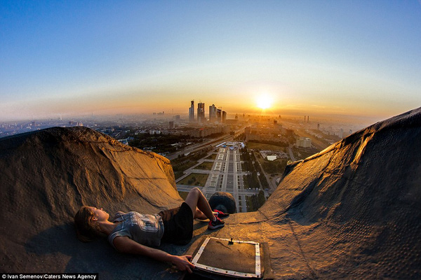 Ivan Semenov chụp ảnh kỷ niệm khi leo lên một trong những tòa nhà cao nhất nước Nga.