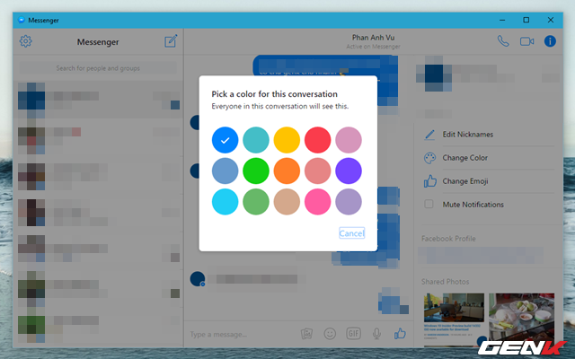 Theo mặc đinh, Facebook Messenger chỉ cung cấp cho người dùng 15 lựa chọn màu sắc để tô điểm cho cuộc trò chuyện thêm phần sống động.